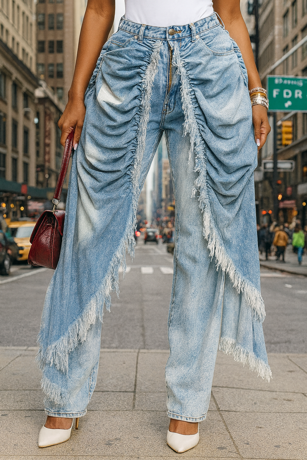 Layered Light Blue Drapery Denim
