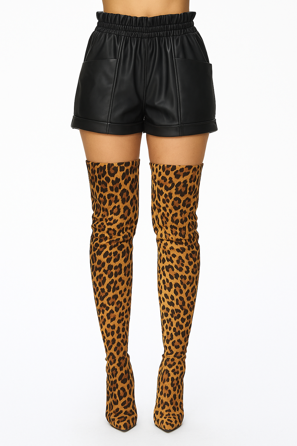 Faux Leather Detail Shorts with Pockets