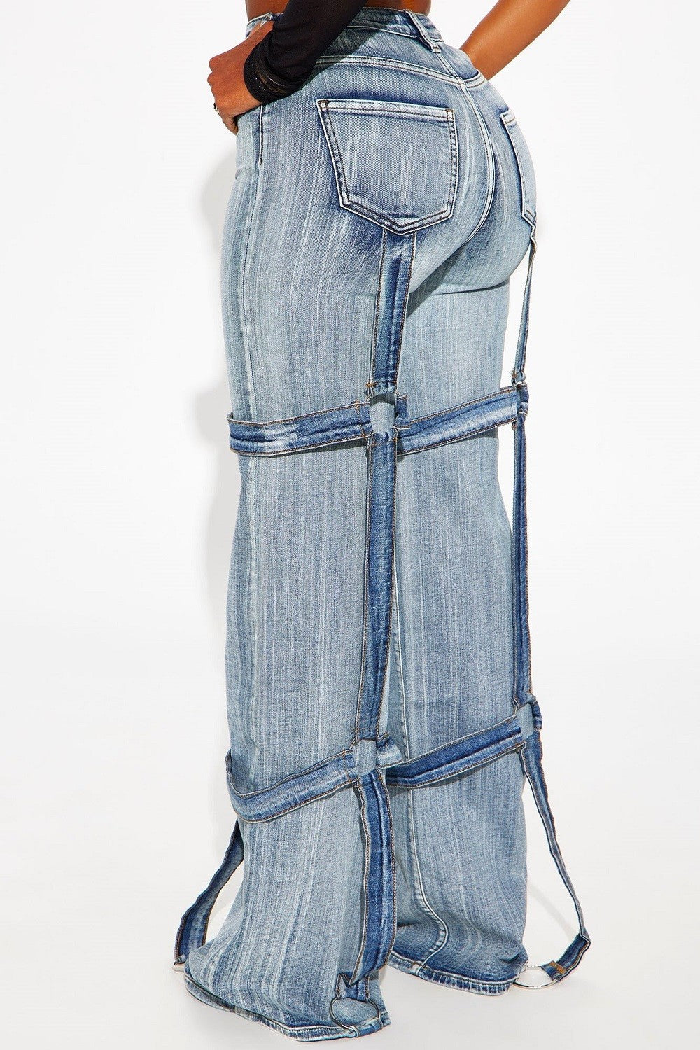 High Rise Ringed Strap Wide Leg Jeans